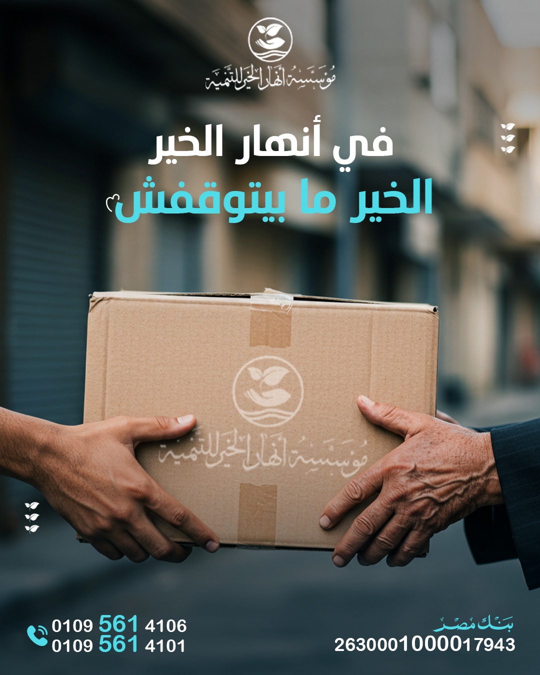 أنهار الخير هي مؤسسة رسمية تم إشهارها وإدراجها لدى وزارة التضامن الإجتماعي بقرار رقم 904 لسنة 2023